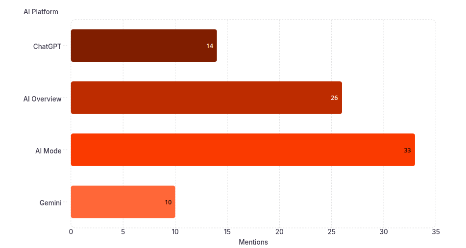 - Total Mentions: 83 (+26%) across AI platforms
